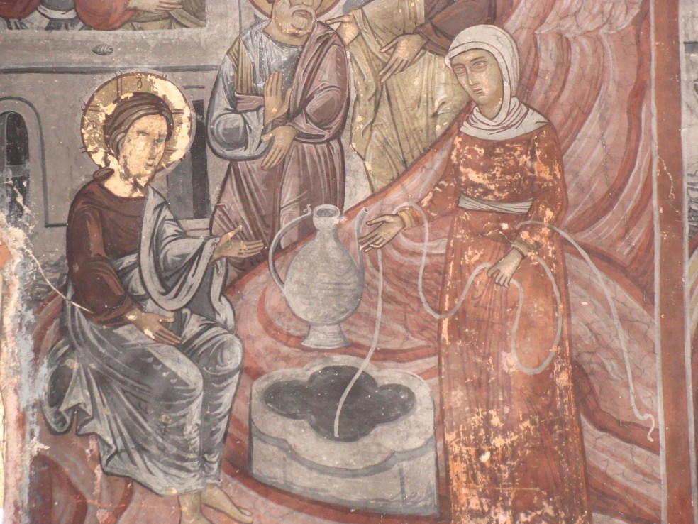 We come across the first in the wonderful story of the Samaritan woman at the well. This woman is very striking. She has had five husbands for a start. She also has a pithy way about her, asking Christ (the Creator of the universe!) how he thinks he is going to manage to pull up some water from the well where they meet near the city of Sychar if he doesn’t have a bucket! This is the man who created the universe, through whom the world was brought into being, and all she can do is affirm that he doesn’t have a bucket and he must think he is clever or something if he thinks he’ll get some water out of the hole without one.