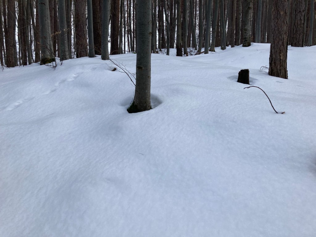 Beneath the snow is one of many moraines – rocks left by glaciers – on Vitosha Mountain.