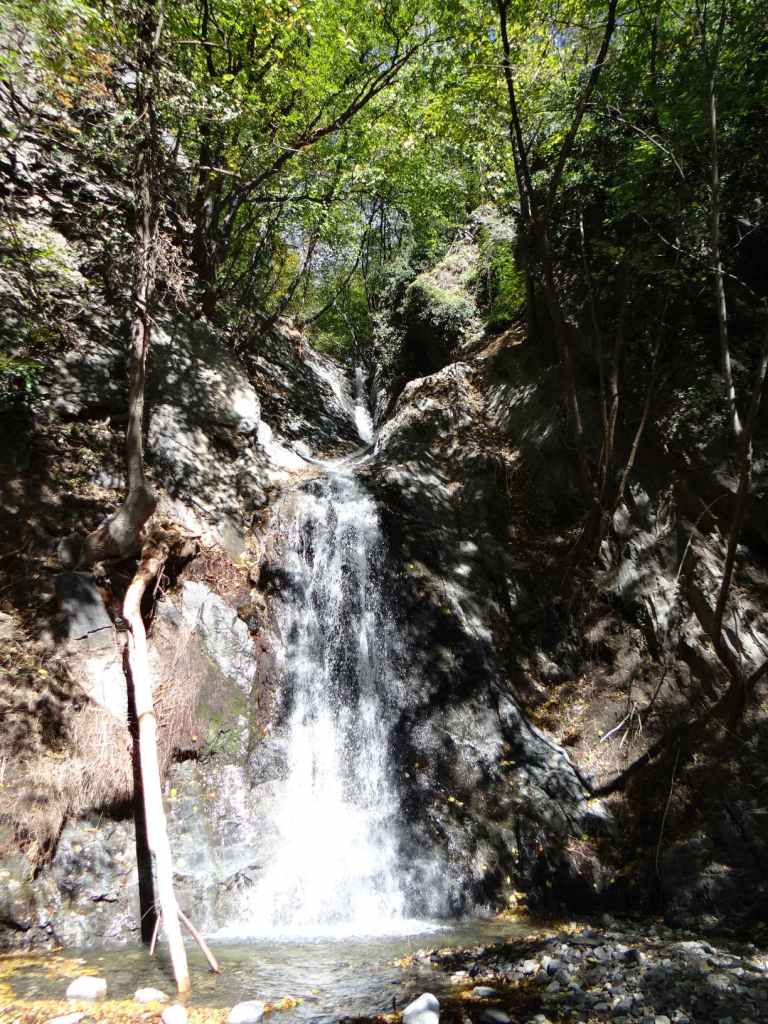 In the past, a nice path ran all the way to the waterfall, passing a small chapel before reaching the waterfall after only 30 minutes. To our amazement, today no path was visible. It ended abruptly at the bridge just behind the monastery and had been replaced by an abyss, a drop down to the riverbed. There is no path anymore. A flash flood – or something like it – appears to have swept away not only the path that used to meander nicely among the trees, but also the very riverbank. There is no riverbank. I am not joking. You are forced to drop down to the riverbed and then to walk along the riverbed. So this outing is not for the fainthearted. But before you become discouraged, let me tell you an hour after we arrived at the waterfall, a gaggle of children all aged under ten arrived as well – I can’t believe how many there were, they started lobbing heavy stones into the pool at the foot of the waterfall – so it can’t have been all that difficult.