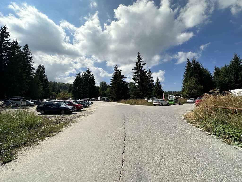 When you reach Zlatni Mostove, where the bus turns around, ignore the turning on the left and continue on the main road, which is partly cobbled, partly tarmacked. After three kilometres, you will reach Ofeliite, a kind of T-junction, with the road continuing on the left to Planinarska Pesen and with a turning on the right to Zvezditsa. There is a small car park on the left, a mountain hut opposite, and a children’s ski slope on the right. The walk takes us along the turning on the right and brings us back along the road on the left.
