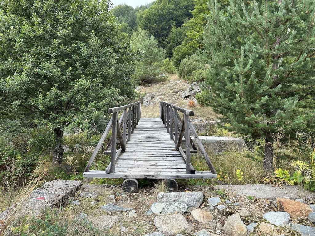You are now going to walk up the east side of the river Struma and return to the village along the west side, so you want to take the shared trail to the left of the green building, a sort of continuation of the road you were on, but now a dirt track signposted for Chuypetlovo 1 and Kladnitsa. Follow this trail out of the village, with the river on your left (even if you can’t see it, the river should be on your left). In ten minutes, you will leave the village through trees, and in another ten minutes you will come out into the open, with moraines scattered to the left of the path. Keep heading north basically, and in another twenty minutes you will reach a bridge over the Struma. This is a perfect place to have a picnic and to enjoy the river’s company since you’re not going to see much more of it until you come back into the village.