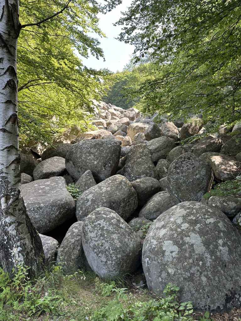 Unfortunately, Ostritsa Hut doesn’t work, but I still ate my lunch, sitting by the hut and the grassy slope that leads to Ostritsa Peak. I then headed back down the way I had come. What makes this path so worthwhile is the beauty of the path itself, which is mostly shaded, the views to the south-west, and the numerous boulders that line the route. You are also on a less frequented part of the mountain.