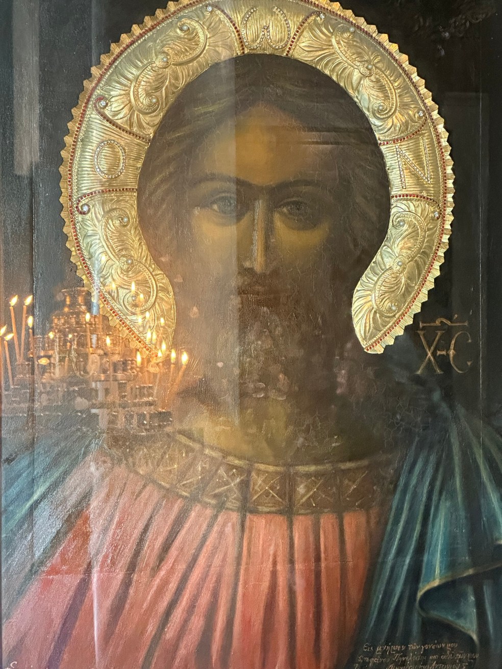 This is what makes us human, a combination of hu (Sanskrit for “invoke the gods” and the root of our word “God”) and man – physical beings with the divine spark in them, the potential to become gods by grace if we attend to our true nature, which is not to grab whatever we see out there and to claim it as our own, making a mockery of the divine in us, but to see ourselves as part of the whole, a word in the dictionary, responsible for and dependent on the other. This most ancient way of calling on God – hu – sounds exactly the same as who, the letters we find in Christ’s icon, emphasizing what it is we should be asking.