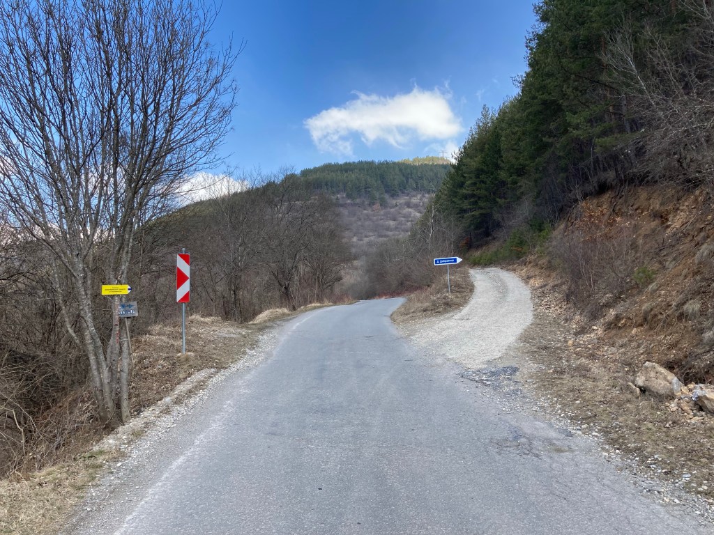 The turning for Skaklya. There is also a sign saying ‘Touristic Road “Vazov’s Path”, 1.4 km’.
