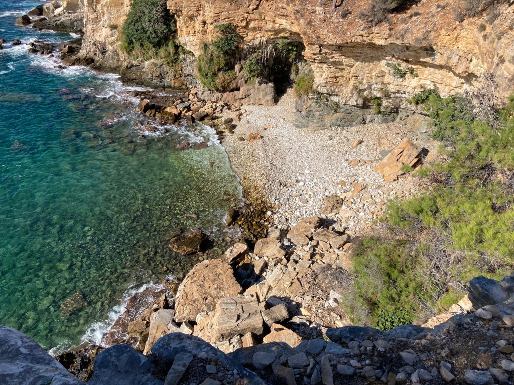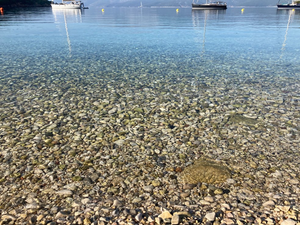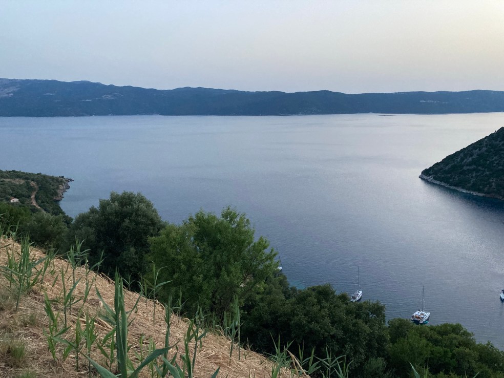 But what struck me this time was the abundance of animal life. On our first day, swimming off the beach of Trypiti round to a gap in the rock that leads to a small harbour, I spotted a flash of blue with a tawny underside. Could it be a kingfisher fishing by the sea? That is certainly what it seemed. I hadn’t seen one since I was a child and visited the RSPB reserve at Minsmere in Suffolk. Two days later, I saw the same flash of blue while swimming off the beach of Atspas – the same or another kingfisher. Off the same beach, we spotted dolphins, circumflex accents dipping in and out of the ocean. Cormorants stood like statues on the rocks, keeping an eye out for fish or simply gazing at the view. Others skimmed the waves in low flight, these ones certainly fishing, competing with the ferries that to and froed in the distance.