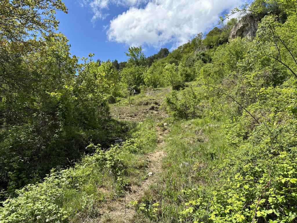 Yamna Waterfall is only half an hour’s walk. In ten minutes (470 metres), a path diverges from the track on the right. This path goes to Etropole Monastery and is said to take 1 hour and 50 minutes. Immediately after this path, there is a second path on the right, with yellow markers. This path will take you to the bottom of the waterfall. If you continue on the track and ignore the two paths, you will come to a field.